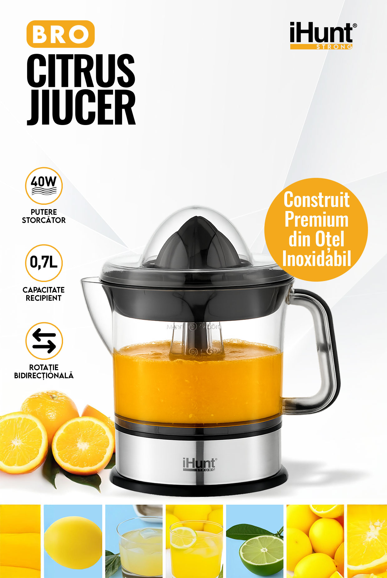🍹 iHunt Bro Citrus Juicer este aliatul perfect pentru sănătate, eficiență și stil în bucătărie. Simplu de folosit, ușor de curățat și complet dedicat sucurilor naturale și fresh.