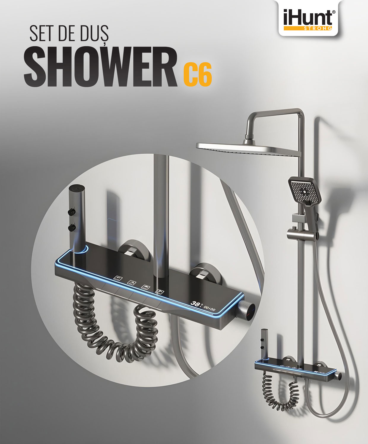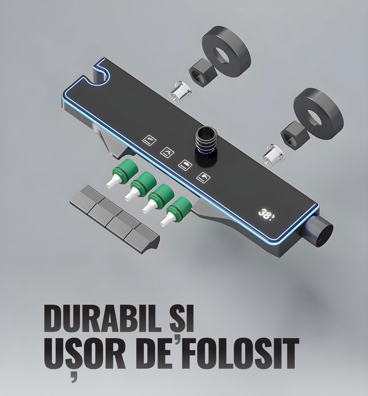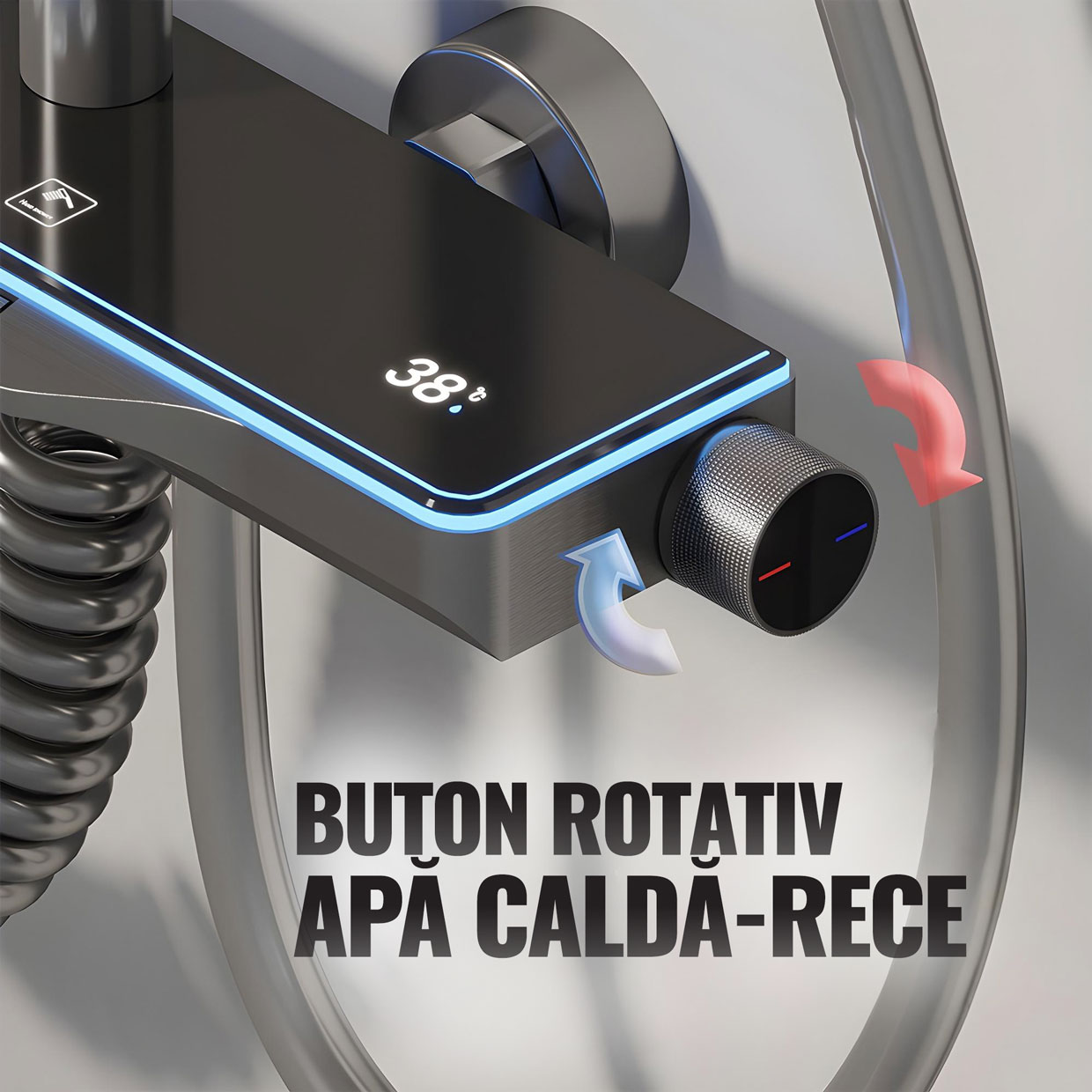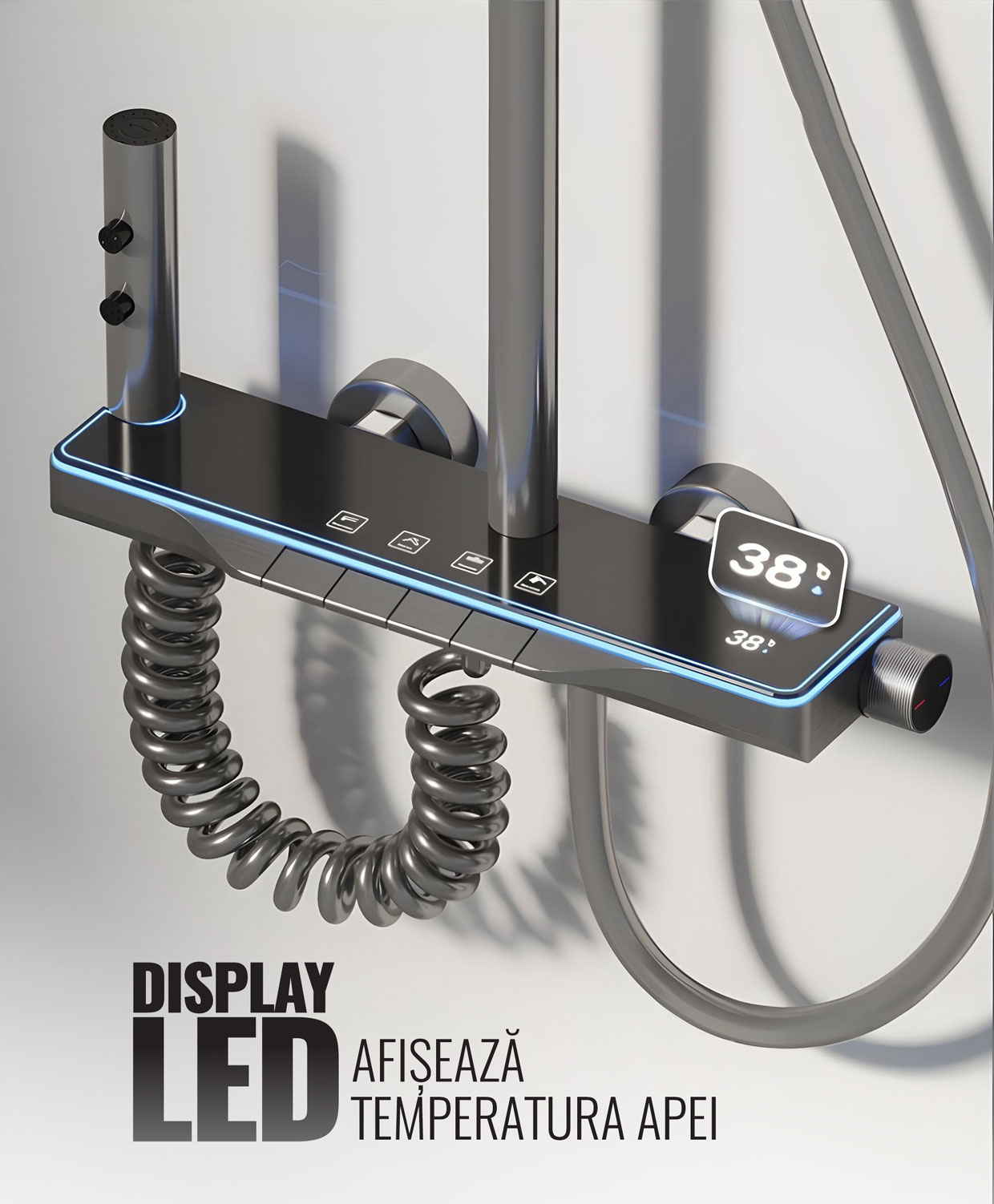 Display LED, buton temperatură apa, 4 moduri de curgere, ajustabil