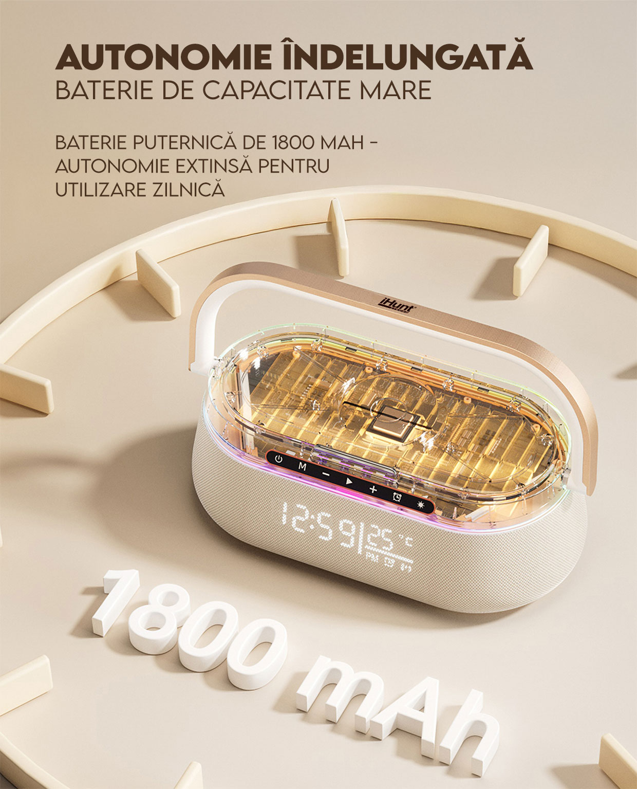 Datorită bateriei interne reîncărcabile de 1800mAh, iHunt BedSide 9 in 1 nu este doar un accesoriu fix. Êl poți lua cu tine în orice cameră sau pe terasă, bucurându-te de funcțiile sale fără a fi dependent de cabluri. Designul ergonomic și materialele premium fac din acest hub un partener indispensabil pentru stilul tău de viață digital.