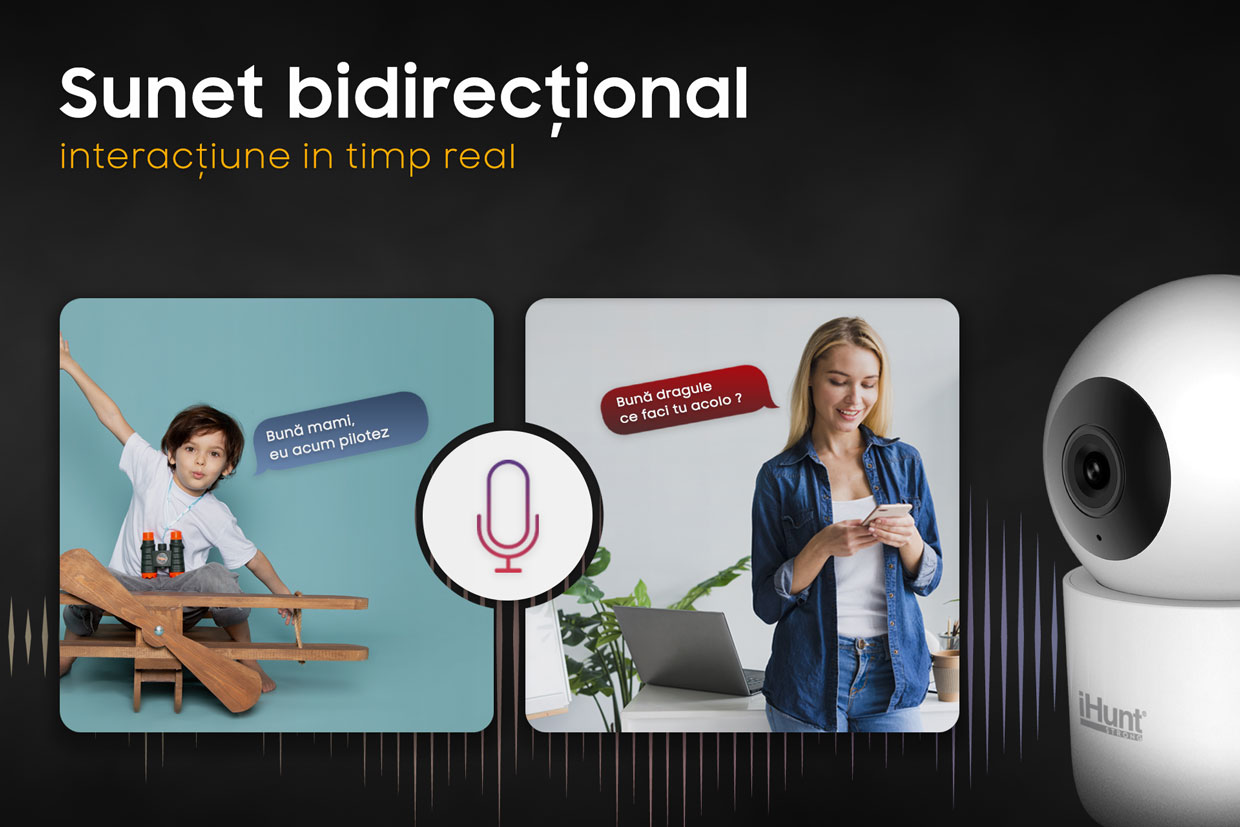 Noua ta cameră de supraveghere este mai avansată decât ai crede, captează fiecare sunet, fiecare zgomot și cuvânt. Pentru că securitatea trebuie să însemne mai mult, am dotat-o cu microfon sensibil și difuzor, caracteristici care-ți vor permite să interacționezi în timp real cu cei dragi, indiferent de locația în care te afli.
