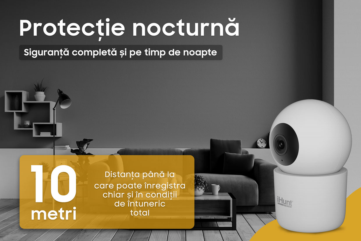 Capabilă să înregistreze și să redea imagini în timp real în condiții de întuneric, o face până la o distanță de 10 metri, suficientă pentru camerele unui apartament. Confortul de a ști că ești protejat în orice moment al zilei sau al nopții.
