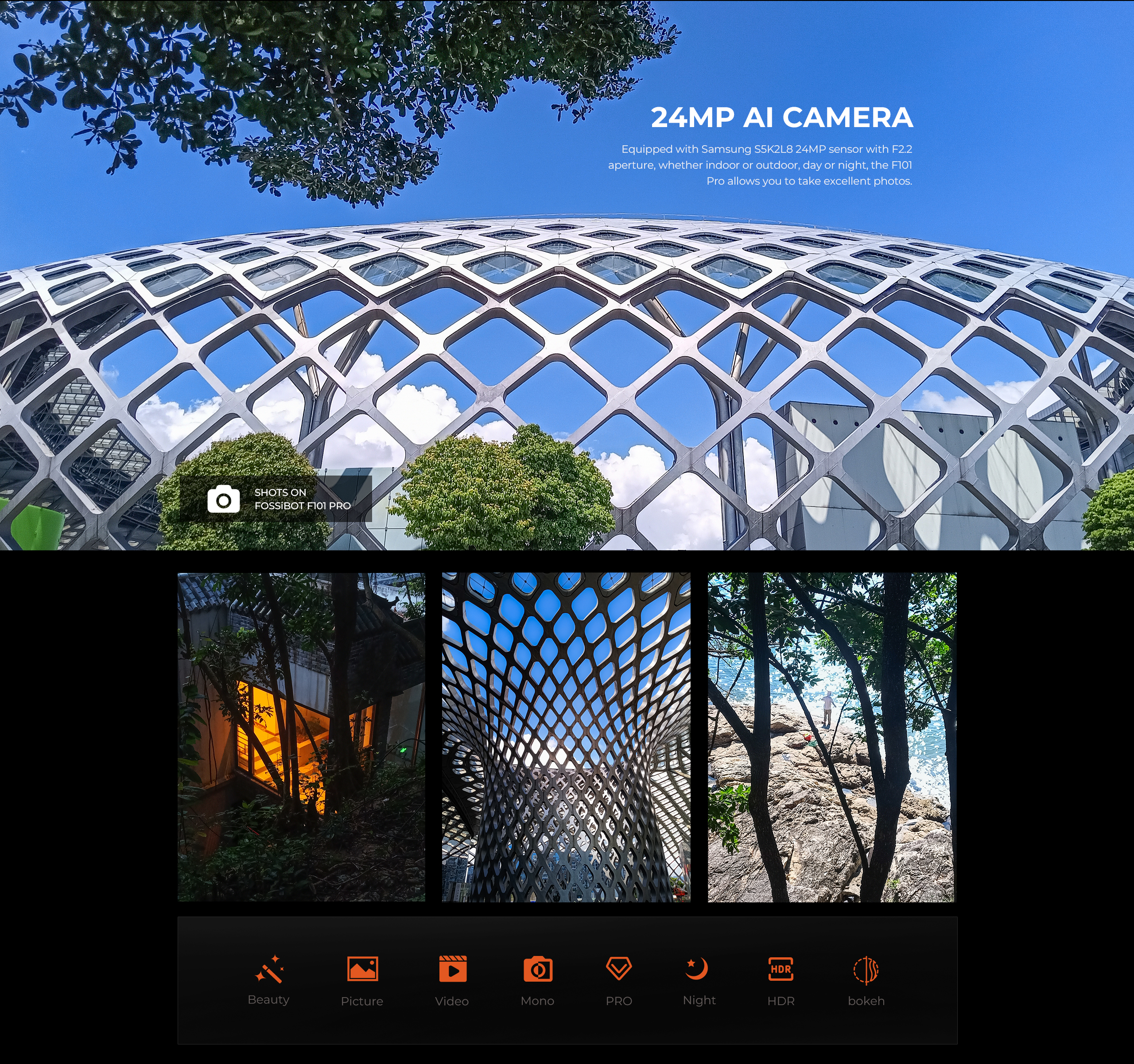 Sistem foto triple AI: 24MP + 5MP + 0.3MP