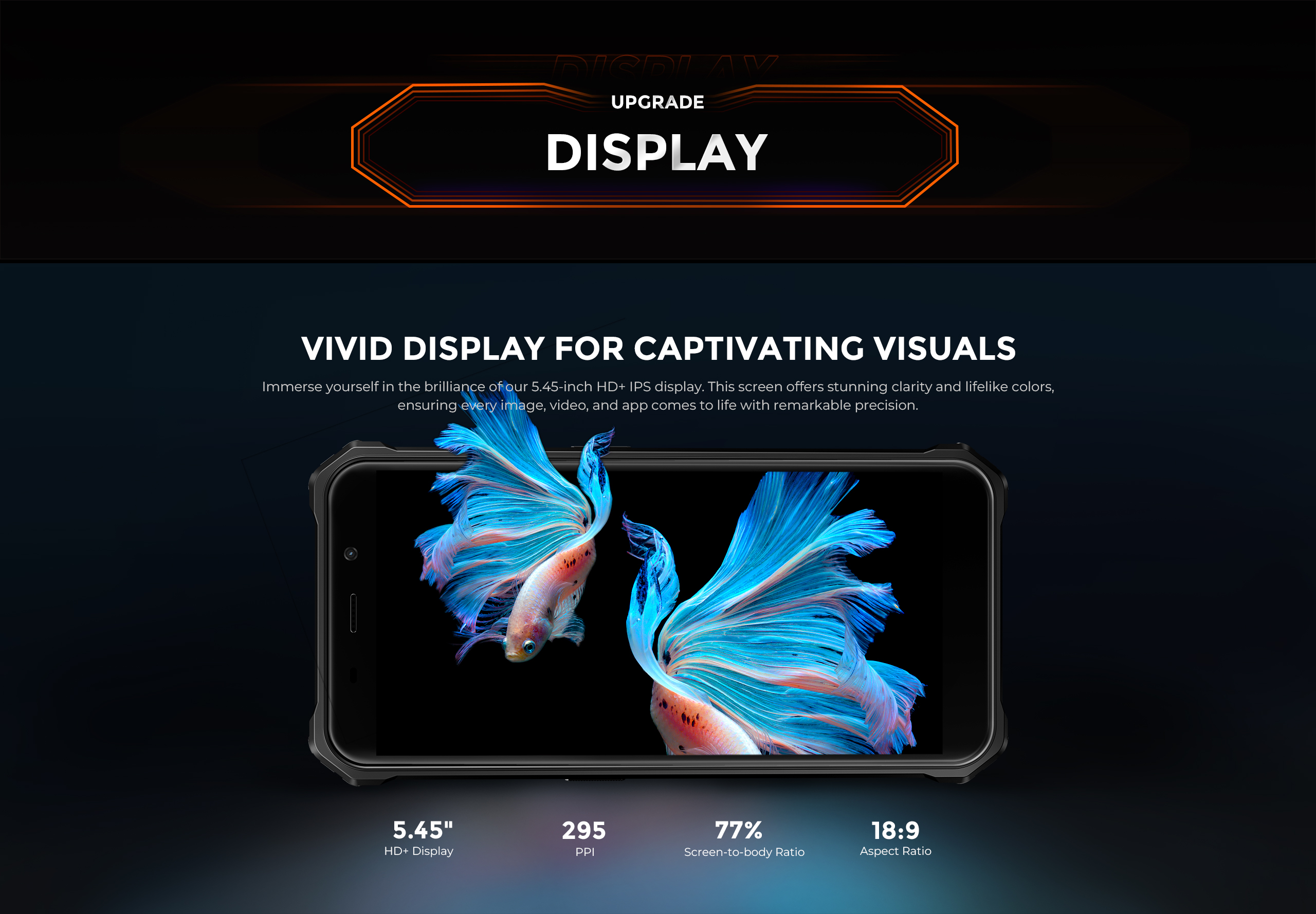 Display principal HD+ 5.45" compact pentru utilizare cu o mână