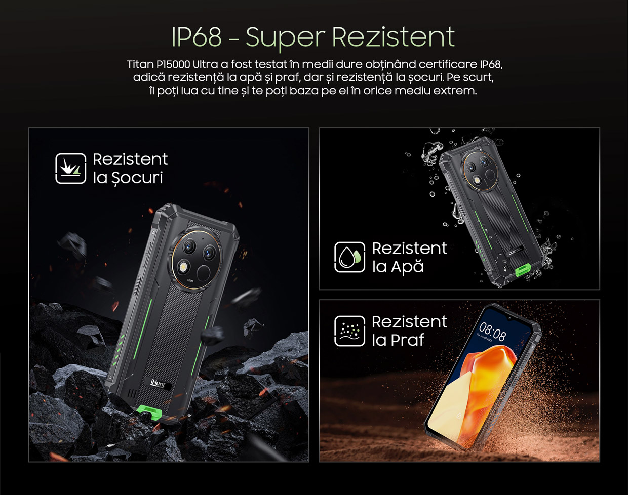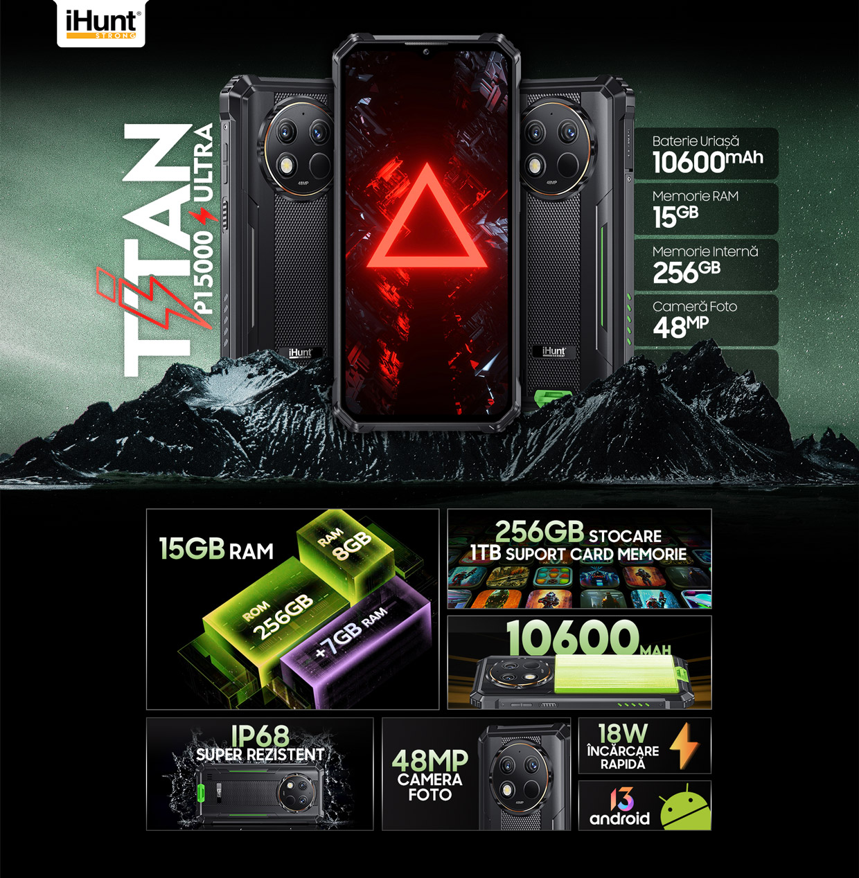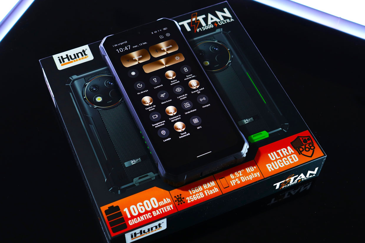Noul tău telefon este chiar aici, dar este unul special! Am împletit rezistența cu performanțele și aspectul deosebit cu autonomia uriașă! Și tot pentru că tu să ai un smartphone așa cum îți dorești, l-am dotat cu cât mai multă memorie RAM, camere foto avansate și sistem de operare care te lasă să alegi! Ce spui? Sună bine? Răspunsul este unul singur, este iHunt Titan P15000 Ultra.