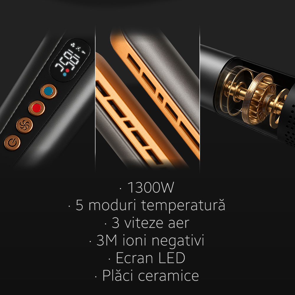 Functii: Uscare + Îndreptare simultană (2-în-1)