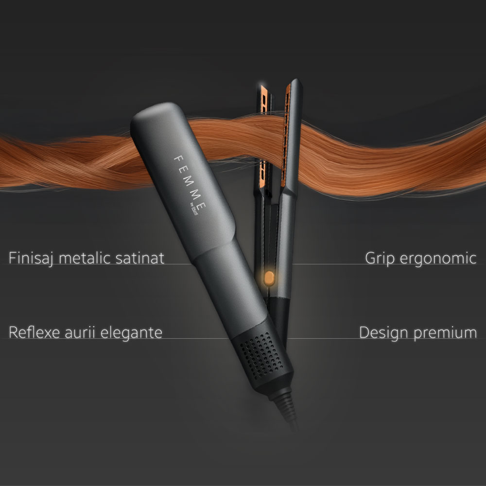 Cu iHunt Femme Dryer Strainghter HC2, obții păr perfect drept, neted și strălucitor în timp record — totul, cu un singur dispozitiv. Puternic, delicat, elegant.