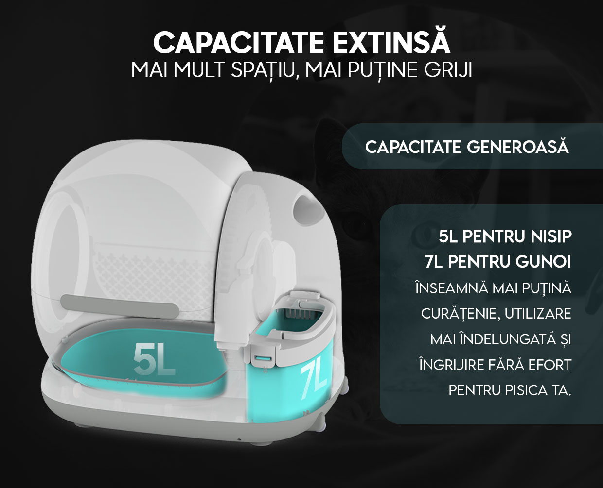 Această litieră nu e doar un gadget. Este un ajutor de încredere care îți oferă liniște, curățenie, control și, cel mai important, timp pentru tine (și joacă pentru pisica ta). 🐾