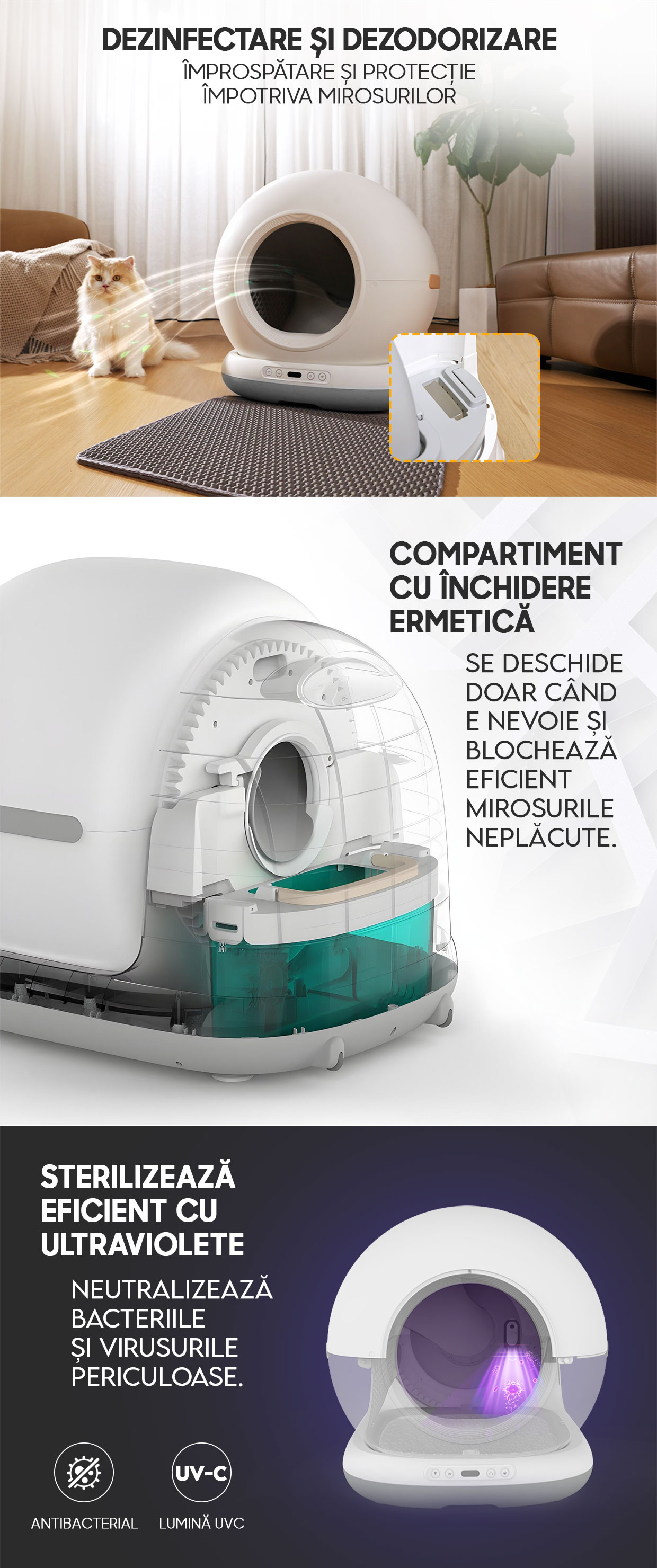 • ✅ Ai liniște și confort, fără mirosuri neplăcute și fără curățenie zilnică.