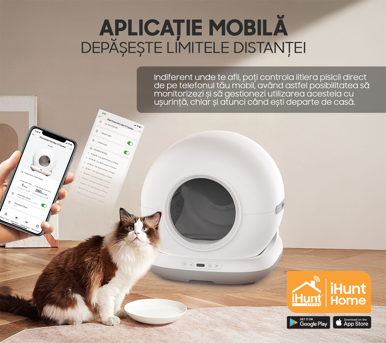 iHunt Smart Cat Litter V7 Camera – litiera automată cu cameră video, care se curăță singură și se gestionează de pe telefon. Confort total, curățenie fără efort și mereu lângă pisica ta.