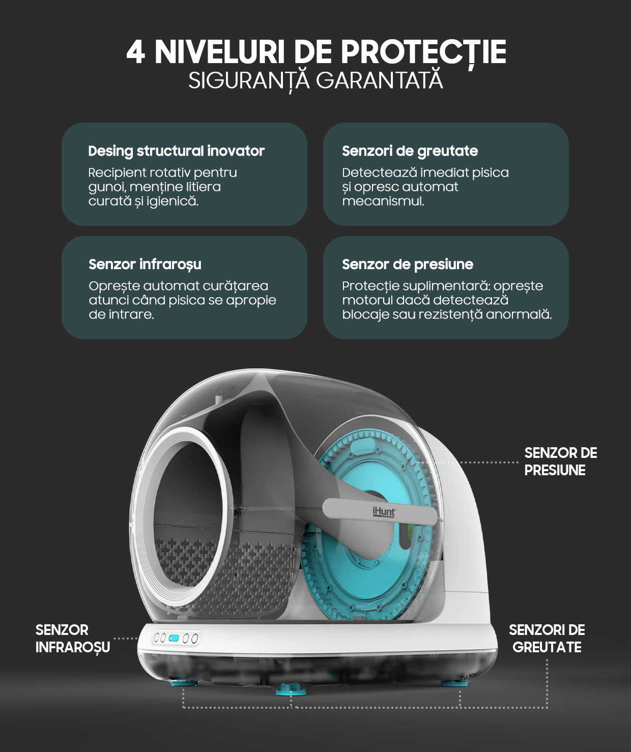iHunt Litiera Automata iHunt Smart Cat Litter V7 Camera, Wi-Fi, Senzori, Camera video, Aplicatie Smart