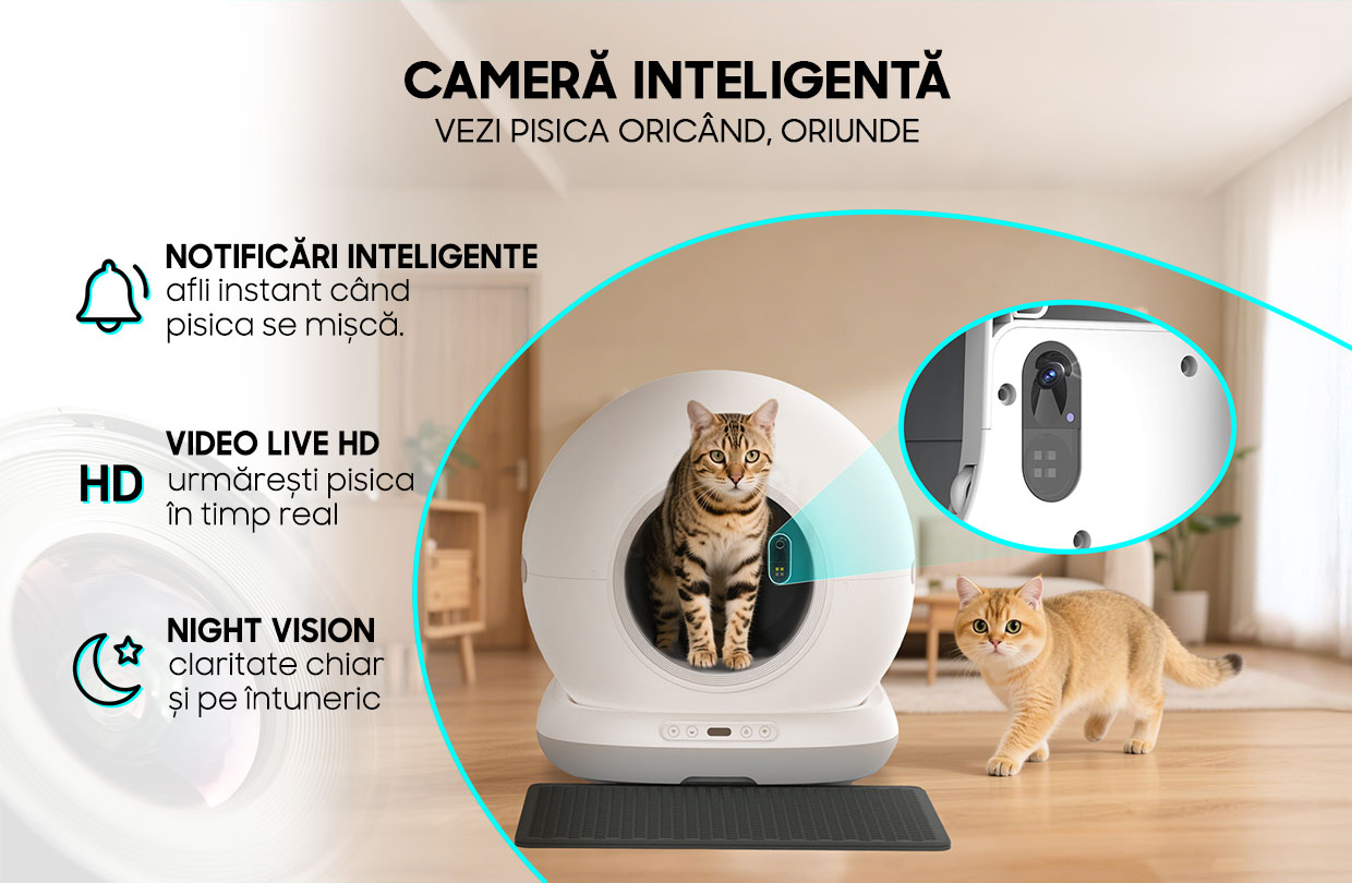 Litieră inteligentă cu cameră – confort pentru tine și pisica ta