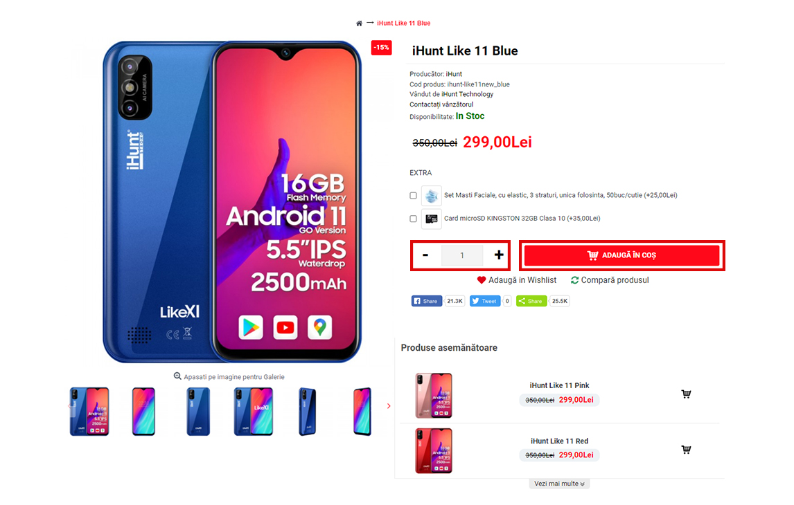 - Selectați cantitatea dorită și apoi apăsați butonul "Adaugă în coș" - Veți fi redirecționat automat către pagina coșului dumneavoastră de cumpărături unde puteți finaliza comanda pentru produsul/ele selectat/e