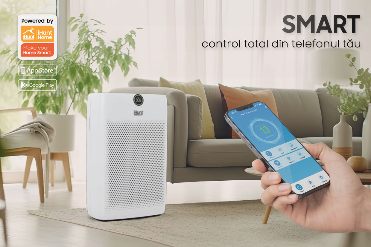 Și pentru că trăim în era digitală, acest purificator de aer vine cu o funcție smart, permițându-vă să-l controlați de la distanță. Fie că sunteți la birou sau în oraș, puteți ajusta setările purificatorului direct de pe smartphone, pentru a vă asigura că veți reveni într-un cămin cu aer curat și proaspăt. Sună interesant? Încearcă-l!