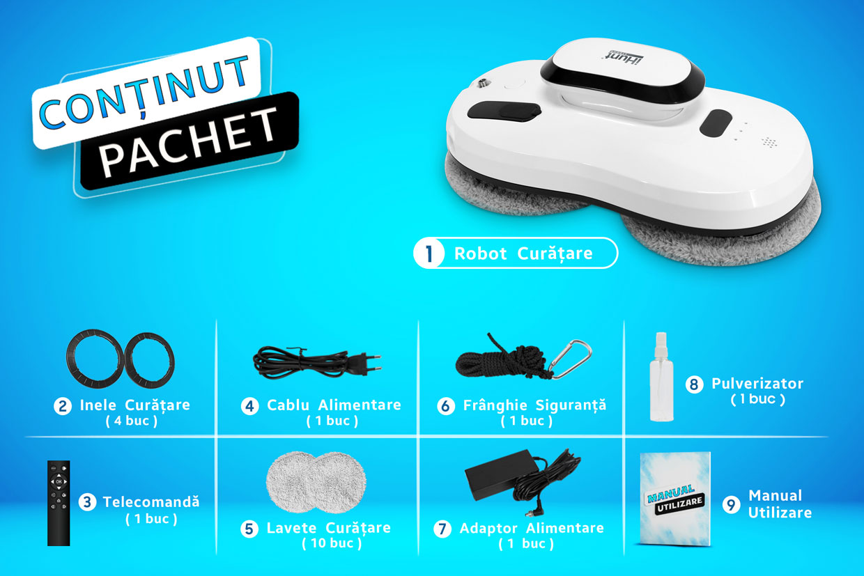 Ai visat și ți-ai dorit de mult ca printr-o simplă apăsare de buton să dispară petele de pe geamuri și Soarele să-ți zâmbească din nou prin ele ? Cum așa, este suficient un simplu click și dispar cârpele murdare și urât mirositoare, șervețelele care se descompun de la primul puf sau durerile de spate ? Exact, dar nu numai atât ! Nu mai vărsa ligheanul de apă prin sufragerie și nici nu mai inhala soluțiile speciale, trebuie să termini cu aplecatul și cu efortul. Acordă-ți timp suplimentar și lasă geamurile în grija roboțelului tău inteligent !