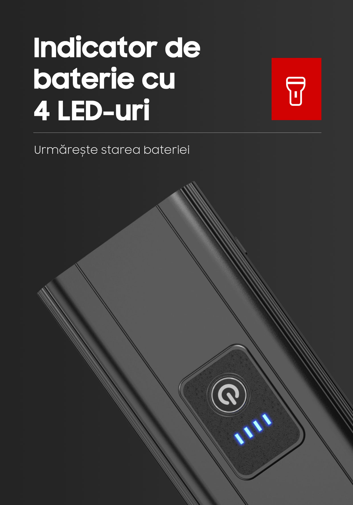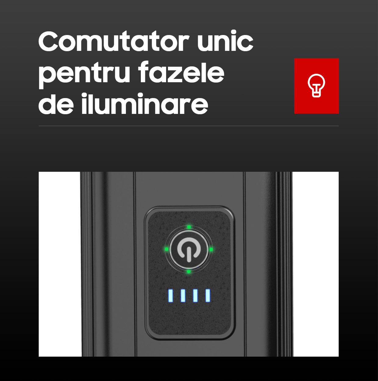 •  Moduri: 6 - 100% fază scurtă>50% fază scurtă>100% fază lungă (punct luminos)>100% fază scurtă+100% fază lungă (punct luminos)>lumină intermitentă lentă>stroboscop;