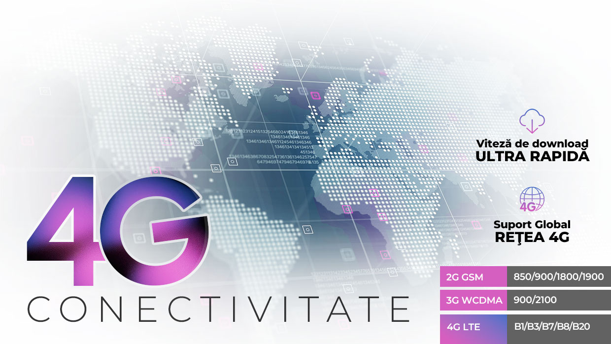 Frecventa: 2G: GSM B2/3/5/8, 4G LTE: FDD B1/3/7/8/20, 3G: WCDMA B1/8