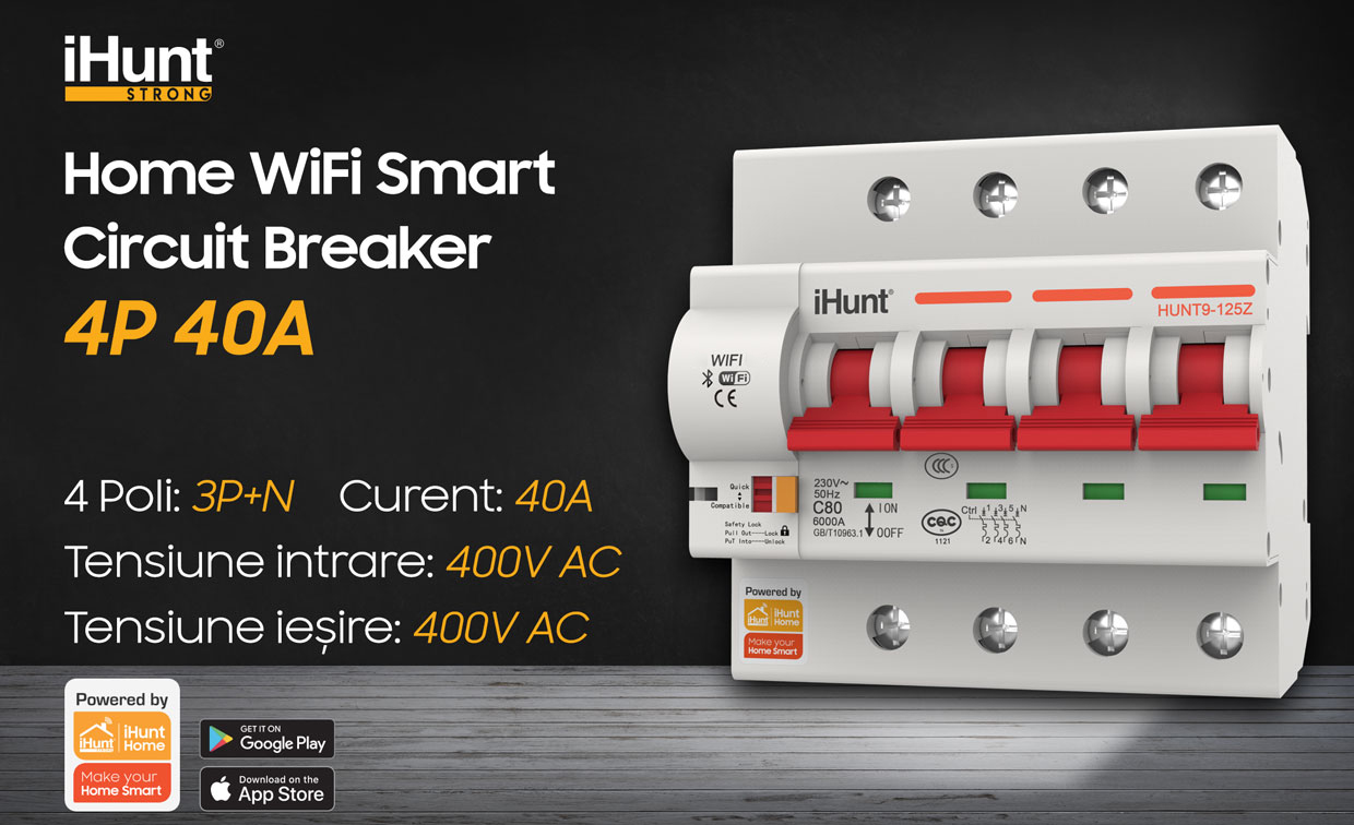 Siguranta automata inteligenta iHunt Home WIFI Smart Circuit Breaker 4P 40A