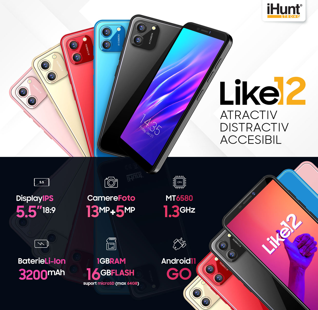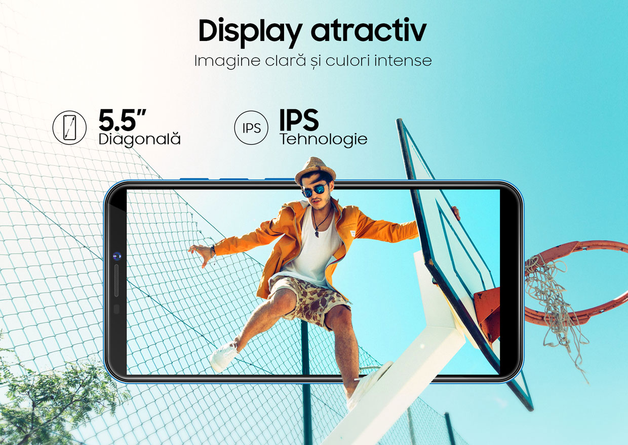 Apasă butonul care te va duce rapid într-o lume plină de culoare, de adrenalină și de distracție. Magia va porni de fiecare dată când îl pornești și vei descoperi un ecran cu o diagonală optimă, ușor de utilizat și bine de ținut în mână. De ce tehnologie IPS ? Pentru a se vedea așa cum trebuie din orice unghi l-ai privi. Fără notch, display neîntrerupt de camere foto sau de alți senzori, tot conținutul în fața ochilor tăi ! Nu-ți face griji, camera de selfie a fost amplasată deasupra ecranului, acolo sunt și senzorii telefonului.