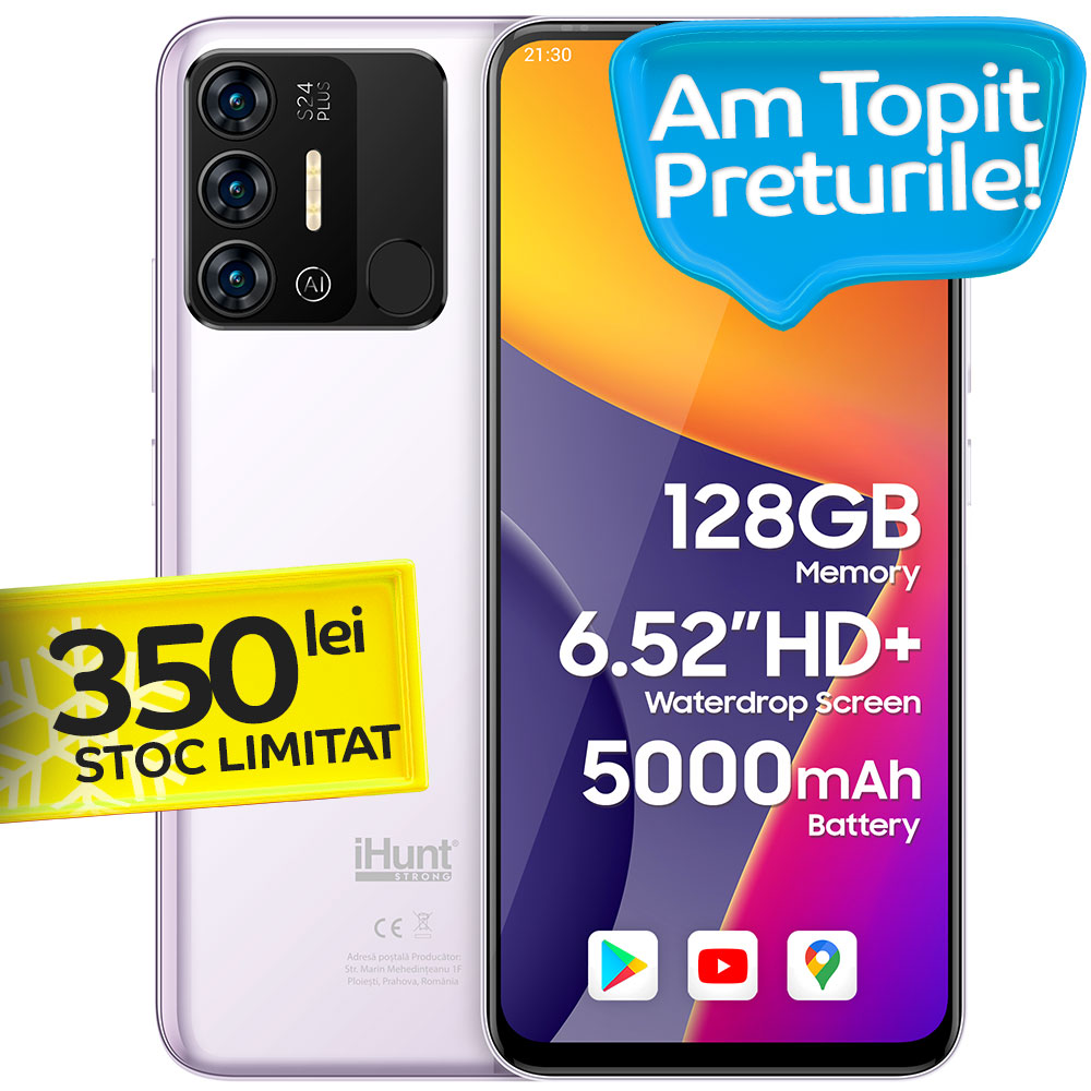 Bun venit la prima întâlnire cu noul tău telefon! Una virtuală, dar cu siguranță că abia aștepți să-l cunoști în realitate, să-l admiri, să-l atingi și să-l lași să te ghideze prin lumea aplicațiilor inteligente și a performanțelor. Ai toate motivele să o faci, este noul tău iHunt S24 Plus. Echipat cu o baterie de lungă durată, un ecran vibrant și o interfață fluidă, acest telefon îți transformă ziua în cea mai eficientă și plăcută experiență multimedia. Hai să-l cunoști mai bine, este pentru tine. Vrei camere, baterie bună, performanțe și un Android customizabil de la A la Z? Le ai pe toate!