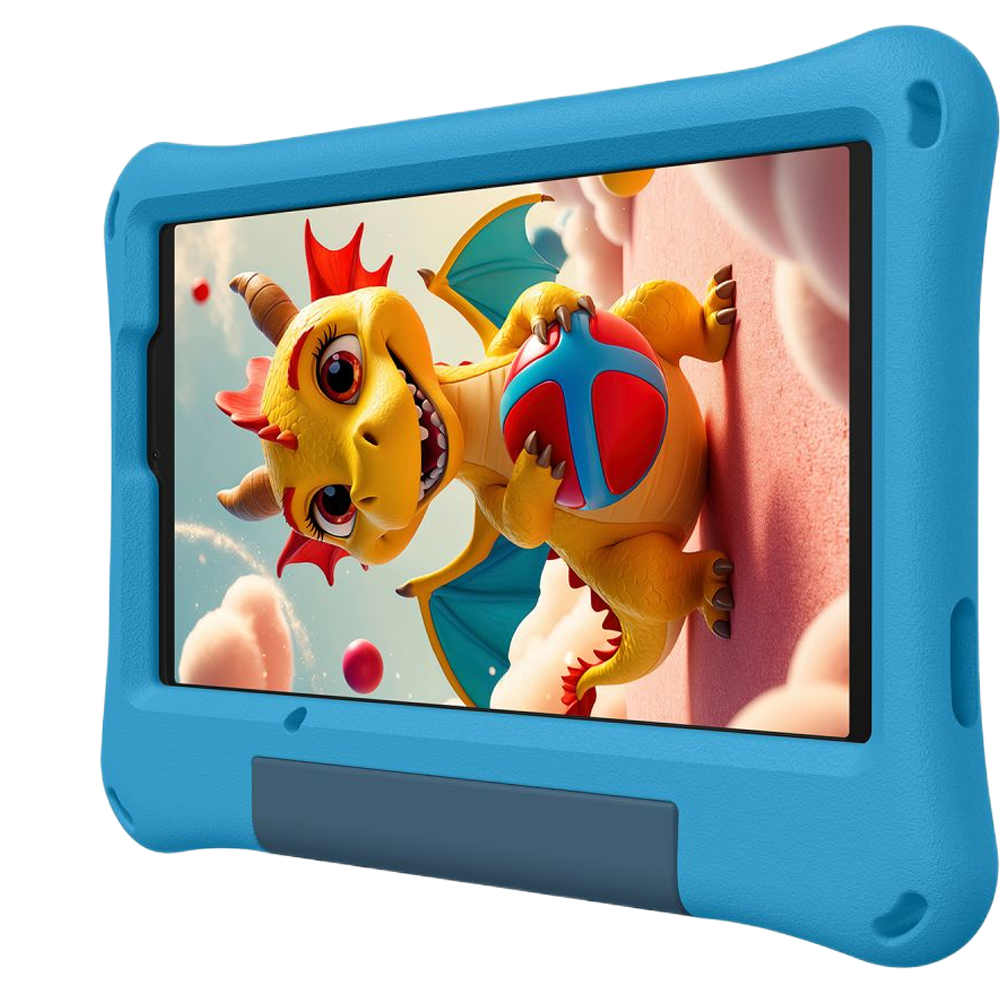 Designul ergonomic cu mâner integrat permite copiilor să transporte ușor tableta din cameră în cameră sau în mașină. Suprafața anti-alunecare asigură o prindere sigură, reducând riscul de cădere. Suportul ajustabil permite poziționarea tabletei la unghiul ideal pentru vizionare, fie că copilul învață la birou sau se relaxează pe canapea.